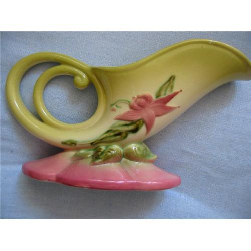 THIS PIECE IS REALLY ATTRACTIVE AND HIGHLY COLLECTIBLE. AS YOU CAN SEE IT IS AS IS "A CHIP ON THE SIDE WHICH IS NOT VISIBLE" (PLEASE SEE THE IMAGE". HOWEVER, USE IT AS AN ACCENT IN YOUR GLASS CASE OR ON THE SIDE TABLE AND PUT FLOWER IN IT. IT WILL SHINE. IT IS ABOUT 11.3/4 INCHES TALL AND 6.3/4 INCHES WIDE. THE COLOR IS MAGNIFICENT AND EYE CATCHING. GREEN AND PINK FLOWERS, IT IS ABSOLUTELY GORGIOUS. ENJOY!!!