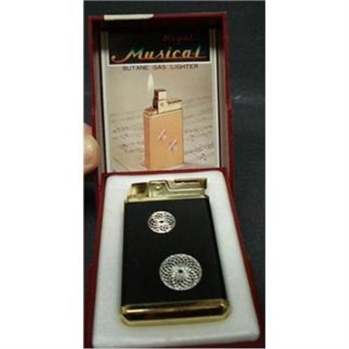 HIGHLY COLLECTABLE LIGHTER, IN ORIGINAL BOX,"ROYAL MUSICAL", IT COMES IN ORIGINAL BOX, IT PLAYS THE "ANNIVERSARY SONG" AND IT IS WIND UP STYLE, JUST LIKE MUSIC BOX, IT SEEMS TO BE IN EXCELLENT CONDITION AND MEASURES ABOUT 2 3/4" HIGH X 1 1/2" WIDE AND 1/2" DEEP, US BUYER TO PAY 7.00 FOR SHIPPING PLUS INSURANCE.THANKS.