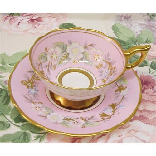 GORGEOUS - FANCY SCALLOPED GOLD PEDESTAL, CUP AND SAUCER DEPICTING MOST GLORIOUS FLORAL DECORATIONS, SUCH QUALITY, UNIQUINESS AND BEAUTY,VERY RARE AND ARTISTIC GOLD RAISED DECORATIONS, MADE BY AYNSLEY OF ENGLAND, EXCELLENT MINT CONDITION IT APPEARS NEVER USED, US BUYER TO PAY 7.00 FOR SHIPPING PLUS INSURANCE.THANKS.