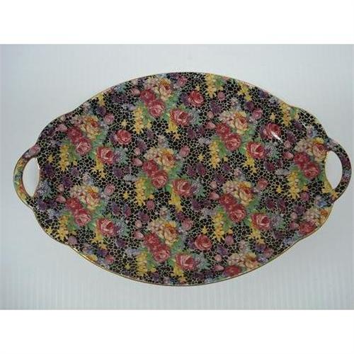 BEAUTIFUL ANTIQUE OVAL DISH, MADE BY ROYAL WINTON - ORIGINAL ROYAL WINTON!, ENGLAND ENTITLED "HAZEL", WHICH IS VERY INTRIGUING BLACK BACKGROUND PATTERN WITH BRIGHT COLORS - FLOWERS, as per images - ,Excellent condition no chips or cracks,but there is glaze crazing, mostly visible from the back of the dish, Measures about 11 " x 5 1/2" and 1 1/2" high, US Buyer to pay 12.00 for shipping plus insurance.THANKS.