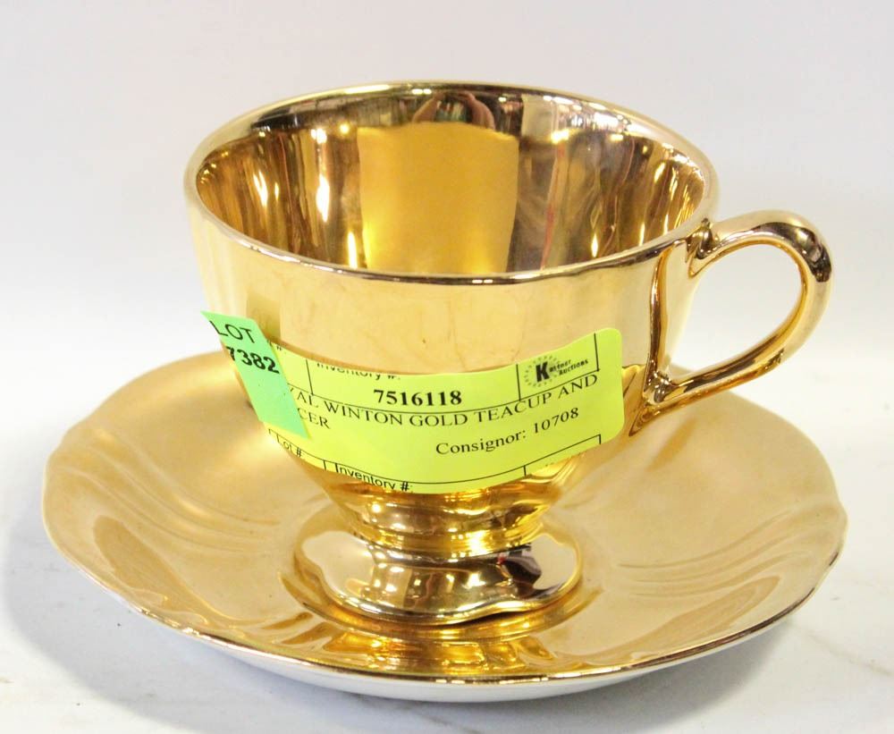 GRIMWADES, ENGLAND. STUNNING GOLD TEACUP AND SAUCER SET.