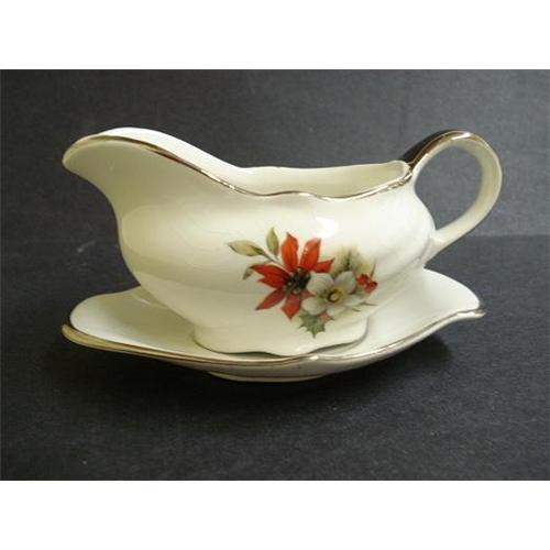 LOVELY SMALL GRAVY BOAT AND MATCHING UNDERPLATE, MADE BY ROYAL WINTON - GRIMWADES - ENGLAND,DECORATED IN BEAUTIFUL CHRISTMAS THEME,Measuring about,from spout to handle 5" x 3" high,Excellent condition, no chips or cracks, but for a lot of glaze crazing - US Buyer to pay 8.00 for shipping plus insurance.THANKS.