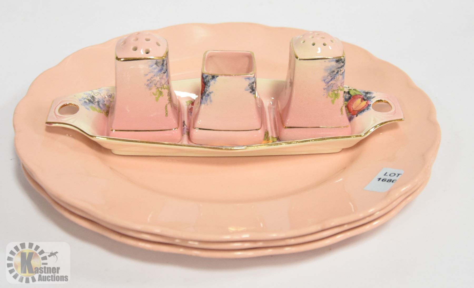ROYAL WINTON SERVICE SET WITH 3 PEACH PETAL PLATES