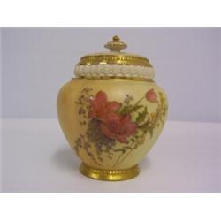 ROYAL WORCESTER DOUBLE LIDDED POT POURRI VASE, the outer lid pierced in cream and gold, the main body painted in a floral design. C1904. 200 - 275