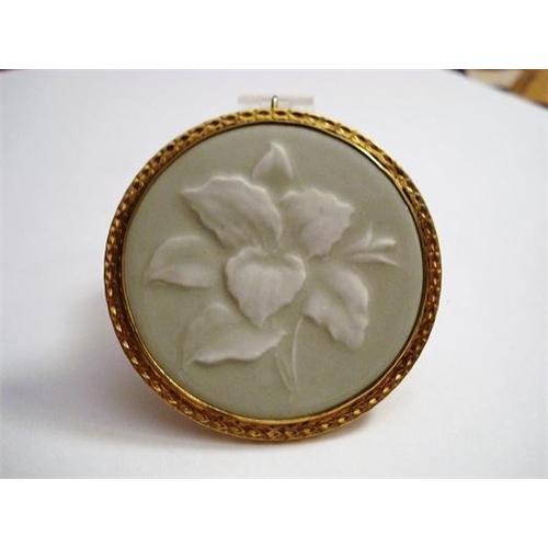 BEAUTIFUL ONE OF THE KIND LARGE ROUND BROOCH OR PENDANT, MADE BY PRESTIGIOUS ROYAL WORCESTER FROM ENGLAND, ENTITLED "WHITE TRILLIUM", THE BROOCH IS MADE FROM PORCELAIN AND DEPICTING LARGE WHITE TRILLIUM BLOSSOM,fRAMED IN A GOLD FILLED FRAME, Signed: Latona g.f., as per images, Measuring about 2" in diam., - US Buyer to pay 7.00 for shipping plus insurance,THANKS.