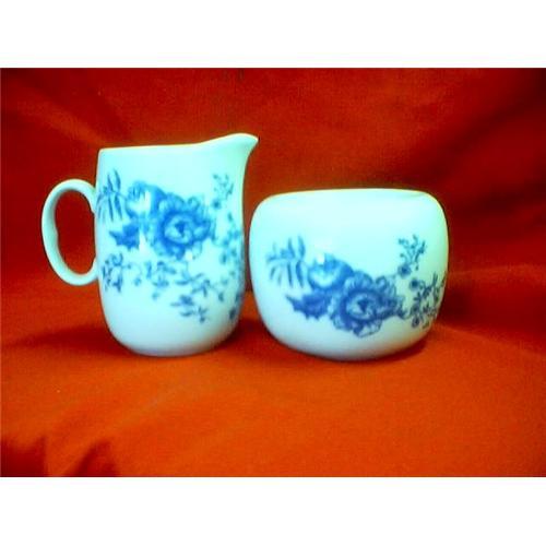 BLUE AND WHITE ROYAL WORESTER MADE IN ENGLAND PORCELAINSUGAR AND CREAMER FROM 1975 IN RHAPSODY PATTERN.THE SUGAR TOP IS MISSING.SUGAR IS 3.3/4" DIAMETER BY 3"TALL AND CREAMER IS 4.1/4"HIGTH AND 4.1/2" WIDEST.THANK YOU FOR BROWSING.
