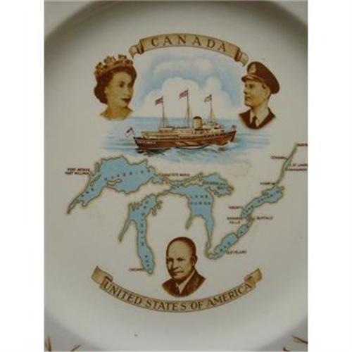 LOVELY ROYALTY PLATE, ISSUED TO COMMEMORATE THE OPENING OF THE ST.LAWRENCE SEAWAY BY H.M. QUEEN ELIZABETH II. CANADA 1959 - MADE BY ALFRED MEAKIN, ENGLAND, EXCELLENT CONDITION,NO CHIPS OR CRACKS, Measuring about 10" in diam. US Buyer to pay 12.00 for shipping plus insurance.THANKS.