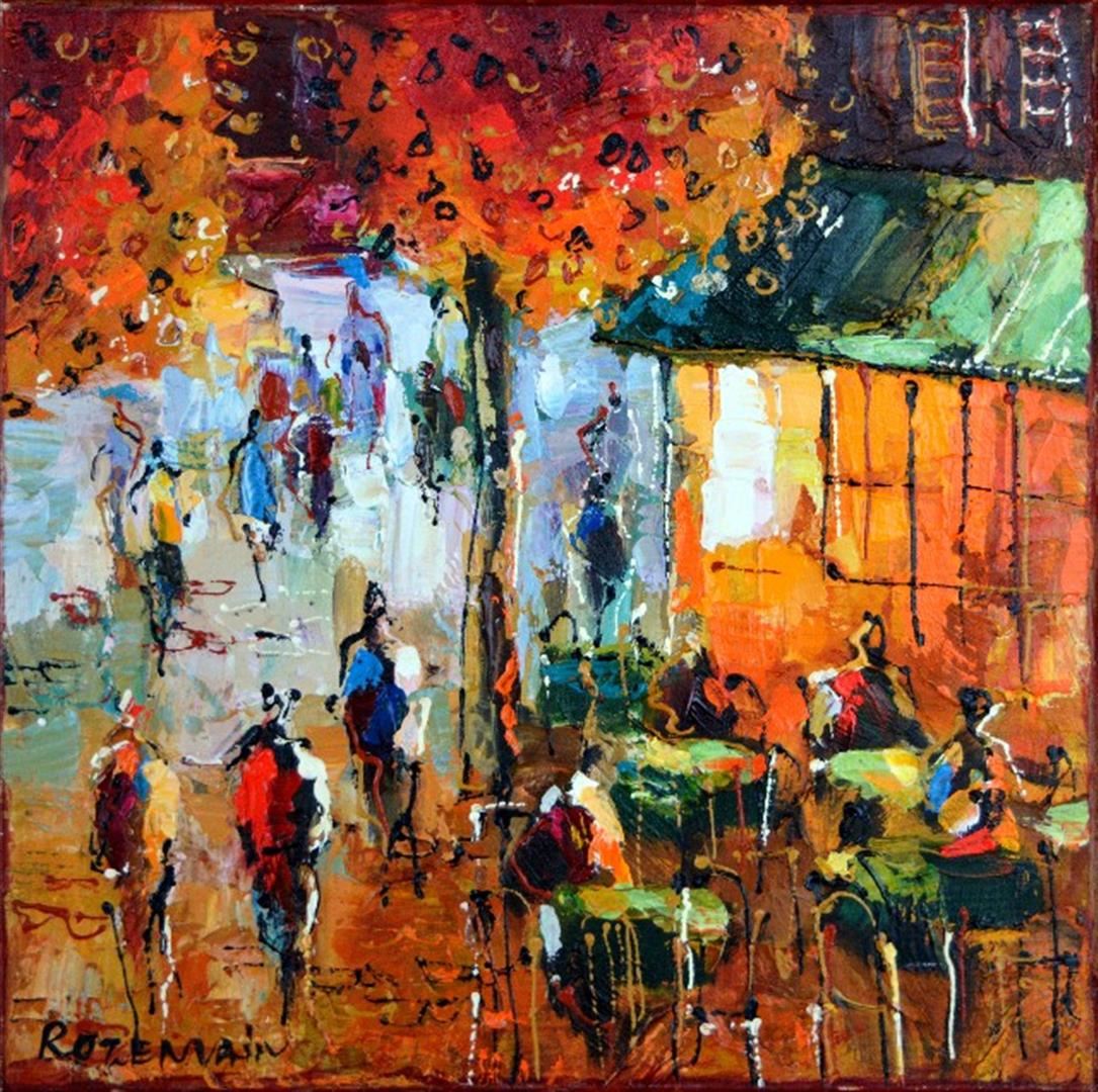 ROZENVAIN ** STREET PARTY ** SIGNED ORIGINAL . Artist: Michael Rozenvain (b. 1963) - Title: Street Party - Medium: Acrylic on Canvas - Signature: This one-of-a-kind work is hand-signed by the artist at the bottom of the image - Image Size: Approximately 16 inches x 16 inches - Framed: Stretched and Ready for Framing - Details: This work comes with a Certificate of Authenticity - Biography: Michael Rozenvain was born in Kiev in the Ukraine in 1963. He attended art school in Kiev and later on continued his studies at the Academy of Decorative Art. He immigrated to Israel in 1990 and has since had a number of one man shows as well as participating in group exhibitions. - Rozenvain's originals have sold for more than $15,000.00 - Warranty: Item GUARANTEED to be as described