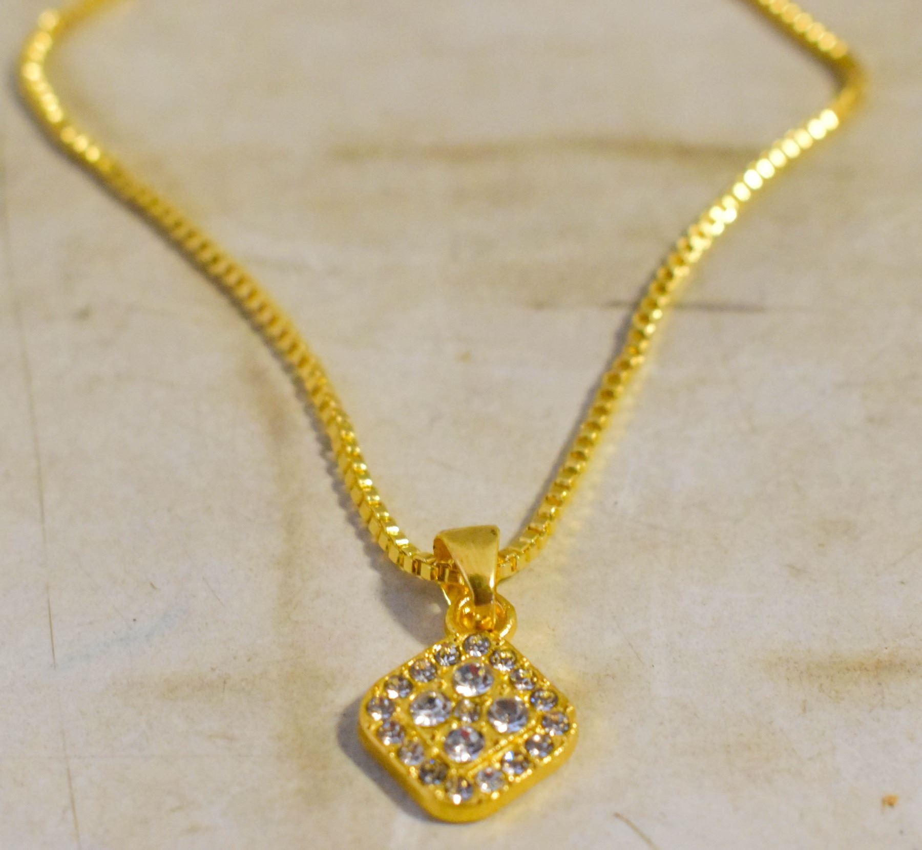 ROZZA C.Z. SQUARE SHAPE PENDANT NECKLACE