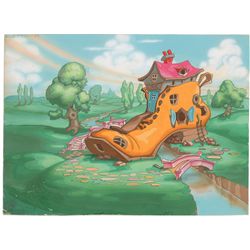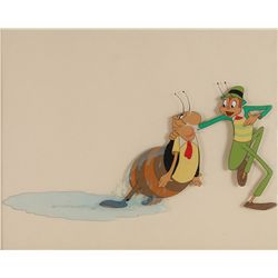 (Walt Disney Studios, 1937) Original production cel featuring Snow White with Bashful, Happy, Doc, Sleepy, and Sneezy from Snow White and the Seven Dw