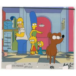 (20th Century Fox, 2001) Original production cel featuring Homer, Marge, and Lisa Simpson with Santa’s Little Helper from The Simpsons episode ‘Simpso