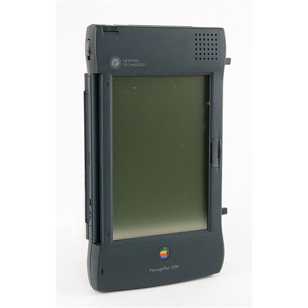 A Newton MessagePad 2100 by Apple Computer with built-in 8MB of RAM (4MB of DRAM and 4MB of flash memory), 160-MHz StrongARM SA-110 RISC processor, bu