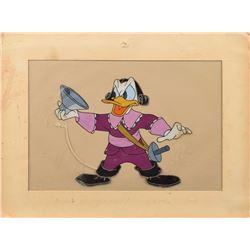(Walt Disney Studios, 1950s) Original production cel featuring Donald Duck from a Disney cartoon, showing him as a swashbuckling hero. Image measures