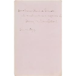 AQS on an off-white 3.75 x 6 sheet, signed "H. B. Stowe." Stowe pens a verse from Henry Wadsworth Longfellow's 'A Psalm of Life....