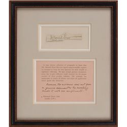 Fountain pen signature, "G. Bernard Shaw,” on an off-white 2.75 x .25 slip. Double-matted and framed above a transmittal card from his secretar...