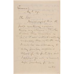 ALS, three pages on two adjoining sheets, 5.25 x 8.25, August 29, no year. Letter to Novello and Co., in part: "I much regret that the proofs e...