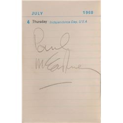 Appealing 1968 Collins pocket diary, 3 x 3.5, signed inside on the date of July 4, 1968, in pencil by McCartney. In very good to fine condition, with