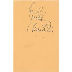 Ballpoint signature, "Paul McCartney (Beatles),” on a light orange 4 x 6 album page. In fine condition. Pre-certified REAL.