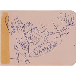 Blue ballpoint signatures of Bill Wyman, Keith Richards, Mick Jagger, Brian Jones, and Charlie Watts, who adds "The Rolling Stones," on a ...