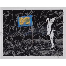 Color satin-finish 14 x 11 photo of an MTV screen, signed in blue and silver ink by musicians from a variety of genres, including: Steve Lukather and
