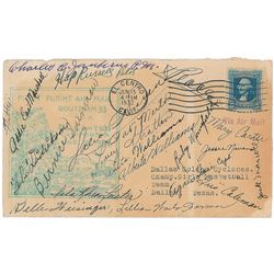 Postal cover, 6 x 3.5, with a stamped cachet, postmarked June 15, 1932, signed in black ink, "'Babe' Didrikson." Also signed by th...