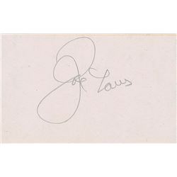 Clean pencil signature, "Joe Louis,” on an off-white 4 x 2.5 card. In fine condition. Pre-certified PSA/DNA.