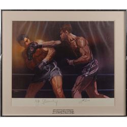 Dramatic color limited edition 20.25 x 16.75 print of a Bob Peak painting entitled 'Joe Louis vs. Max Schmeling,' showing the two pugilists ...