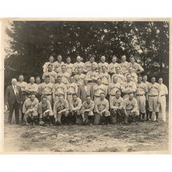 Original circa early 1930s first generation 10 x 8 photo of the entire Yankees team during spring training, featuring Babe Ruth in the center of the t