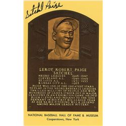 Gold Hall of Fame plaque card signed at the top in dark black felt tip by Paige. In fine condition, with slight irregular ink adhesion. Accompanied by