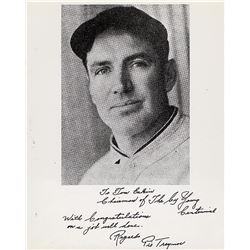 Glossy 8 x 10 photo of Traynor, signed and inscribed in black felt tip, “To Tom Eakin, Chairman of the Cy Young Centennial, With congratulations on a
