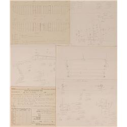 Highly appealing set of five original pencil sketches by Louis P. Christman, chief production engineer of the Wright Aeroplane Co., on individual off-