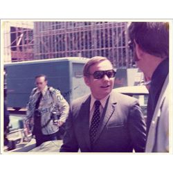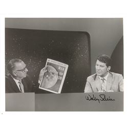 Three items: a glossy 10 x 8 photo of Wally Schirra sitting with Walter Cronkite during a CBS televised moon-landing special, signed in black felt tip