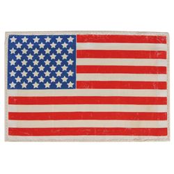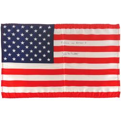 Jim McDivitt's flown American flag, 17.25 x 11.25, signed on the white stripes in black ink, "Flown on Apollo 9, Jim McDivitt." In fin...
