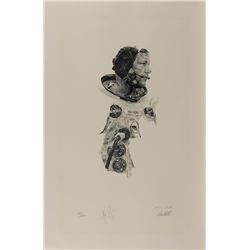 Limited edition 19 x 29 lithograph of Armstrong in his flight suit prior to the Apollo 11 mission, numbered 568/1000, signed in pencil by history’s fi
