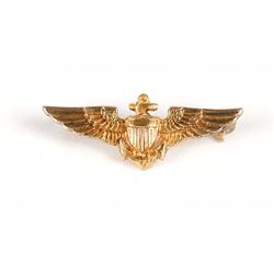 Alan Bean's flown miniature gold Navy wings pin carried aboard Apollo 12 for Skylab 3 commander Jerry Carr, measuring 1? long, hallmarked on the...