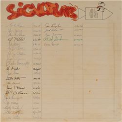 Vintage circa 1969 felt tip and ballpoint signatures of 25 astronauts on a 16 x 16 sheet, including: Neil Armstrong, Buzz Aldrin, Michael Collins, Ala