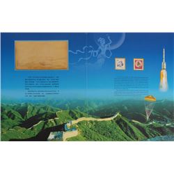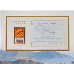 Rare flown pair of stamps carried aboard the Shenzou-1 spaceship, each 1 x 1.25, numbered 2250/4000, displayed within an attractive 10.5 x 13.25 China