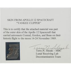 Flown .75 x 1 swatch of Kapton foil removed from the outer skin of the Apollo 12 Command Module Yankee Clipper, affixed to a certificate of authentici