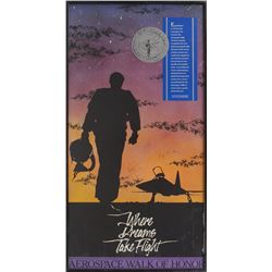 Attractive color 14.5 x 29.75 Aerospace Walk of Honor poster entitled 'Where Dreams Take Flight,' showing the silhouette of a pilot walking ...