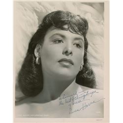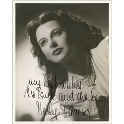 Vintage matte-finish 8 x 10 photo of the elegant Lamarr, boldly signed and inscribed in fountain pen, “My best wishes to Buck and the boys, Hedy Lamar