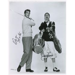 Humorous satin-finish 11 x 14 full-length photo of Martin and Lewis from the 1953 film The Caddy, signed by both in black felt tip. In fine condition.