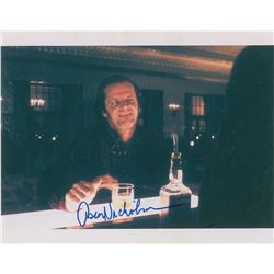 Color satin-finish 14 x 11 photo of Nicholson as the haunted Jack Torrance during the bar scene from the 1980 film The Shining, signed in blue felt ti