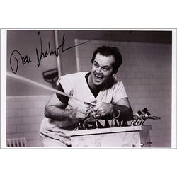 Glossy 15 x 10 photo of Nicholson as R. P. McMurphy from the 1975 film One Flew Over the Cuckoo’s Nest, signed in black felt tip. In fine condition.