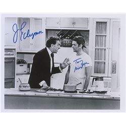 Glossy 10 x 8 photo of Oscar and Felix in a heated debate, signed in blue felt tip by Jack Klugman and Tony Randall. In fine condition.