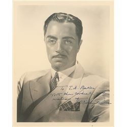 Vintage matte-finish 8 x 10 photo of Powell in a debonair suit and tie, signed and inscribed in fountain pen, “To T. H. Baker—With the cordial good wi