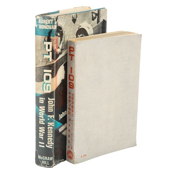 English and Japanese editions of PT 109: John F. Kennedy in World War II by Robert J. Donovan, both signed inside by Yamashiro, "Capt. Katsumor...