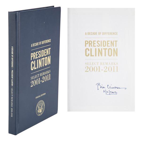 Signed book: A Decade of Difference: President Clinton, Select Remarks, 2001–2011. NY: Clinton Foundation, 2011. Hardcover