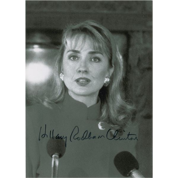 Glossy 5 x 7 photo of Hillary Clinton as the first lady of Arkansas, signed in black felt tip, "Hillary Rodham Clinton." Typed notation to...