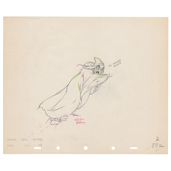 (Walt Disney Studios, 1937) Original production drawing featuring the Wicked Witch from Snow White and the Seven Dwarfs, showing her pointing her evil