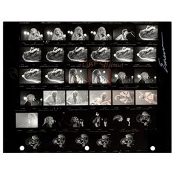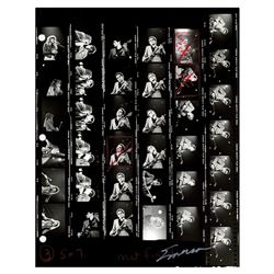 Original glossy 8 x 10 silver gelatin photograph of Bob Dylan on stage and playing his Fender Stratocaster electric guitar. Reverse bears a Retna Ltd.